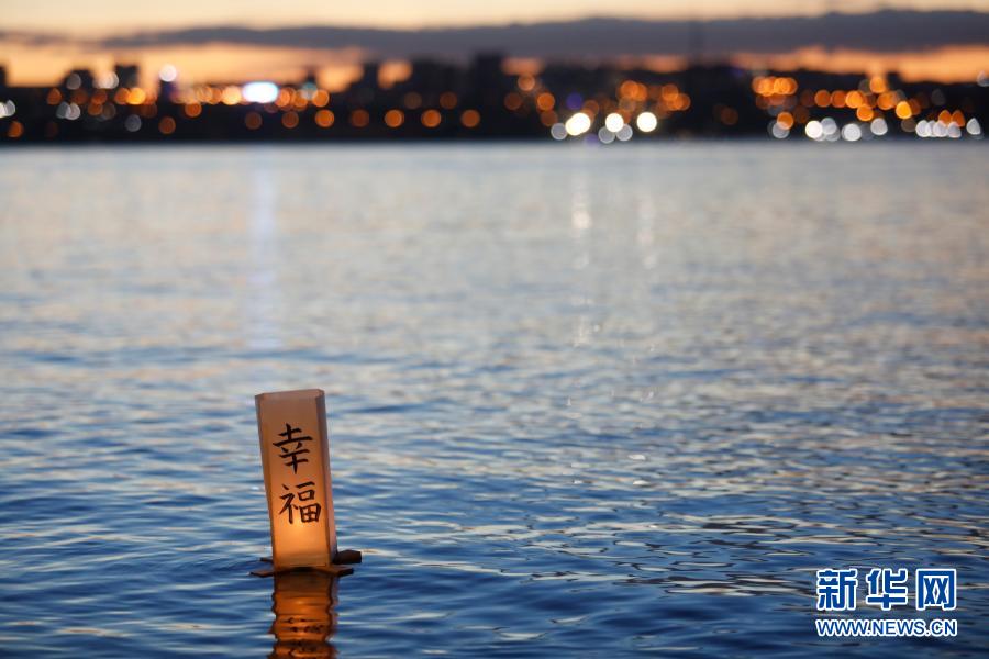 這是11月30日在巴西首都巴西利亞拍攝的湖上的水燈。新華社發(盧西奧·塔沃拉攝)