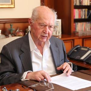 4月27日,塞浦路斯前總統喬治·瓦西利烏在塞浦路斯南部利馬索爾接受新華社記者專訪。